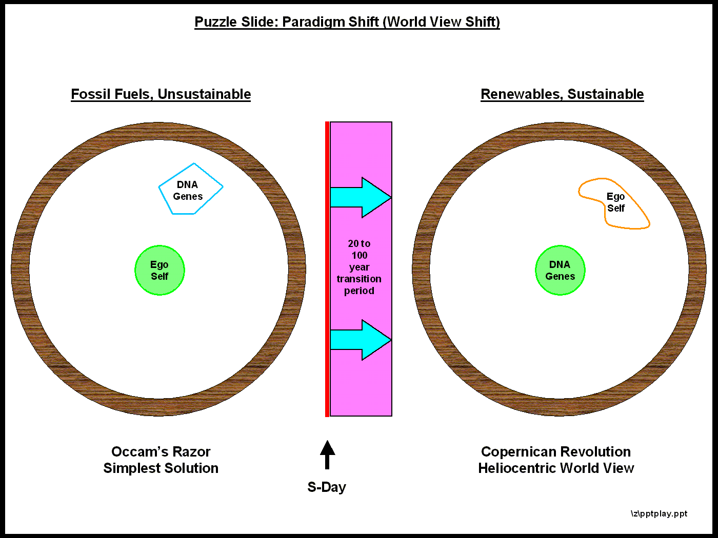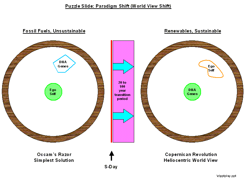 | Some key concepts of Plan S are S-Day, paradigm shift, a transition period, moving to renewable energy, and a transition to a DNA/Gene centered worldview. This is an unfinished diagram showing how these concepts all fit together. This smaller one will fit on a 1024x768 monitor, but might be a little fuzzy. | puzzle.slide.sm.gif | 6 |
